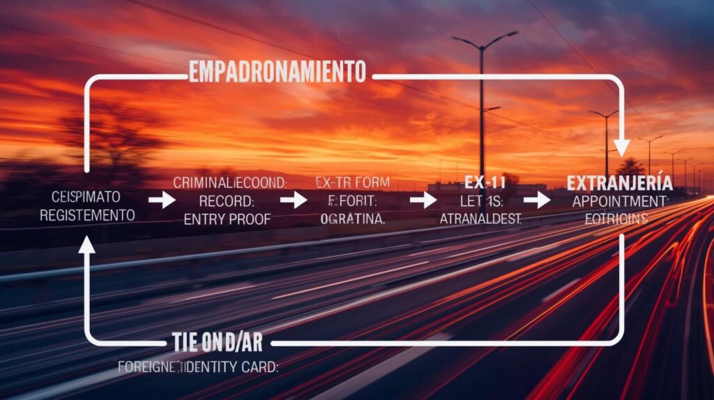 الخطوة الأولى: احصل على Empadronamiento من Ayuntamiento محلك (مجاني، يوم واحد). ثانياً، اطلب سجل جنائي من Policia.es وسفارة بلدك (7-10 أيام).