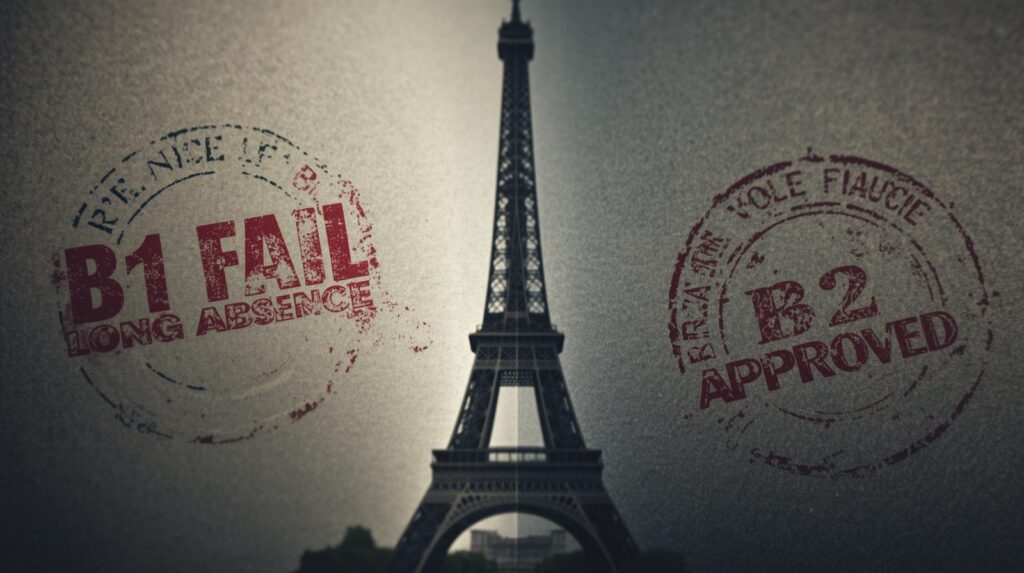 أوّلاً، B1 بدل B2 (رفض تلقائي). ثانياً، غياب >6 أشهر. ثالثاً، رسالة دمج ضعيفة. رابعاً، سجل غير نظيف. خامساً، عدم تجديد Carte.